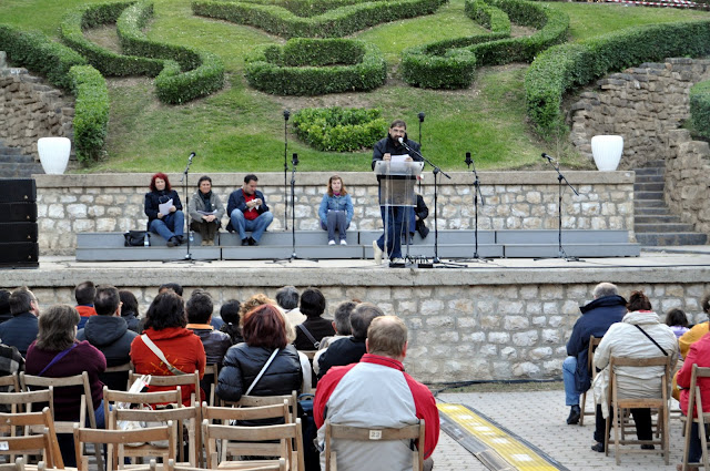 El día 16 de mayo alrededor de las 7 de la tarde, desafiando al tiempo y pasando un frío poco habitual en esta época del año, nos reunimos unos cuantos para leer nuestros poemas acudiendo a la llamada de Nacho Escuín. Fue una tarde magnífica donde tuve la suerte de compartir lectura de poemas con Concha Vicente, Fernando Burbano, Jesús Soría, Fernando Sarría, Loli Bernal y otros... Puso el punto final la Coral Libertaria de Torrero.